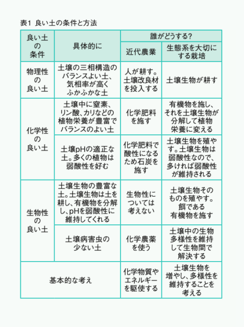 良い土とは、物理性、化学性、生物性に分けて考えて、それぞれの良い土ということができます。