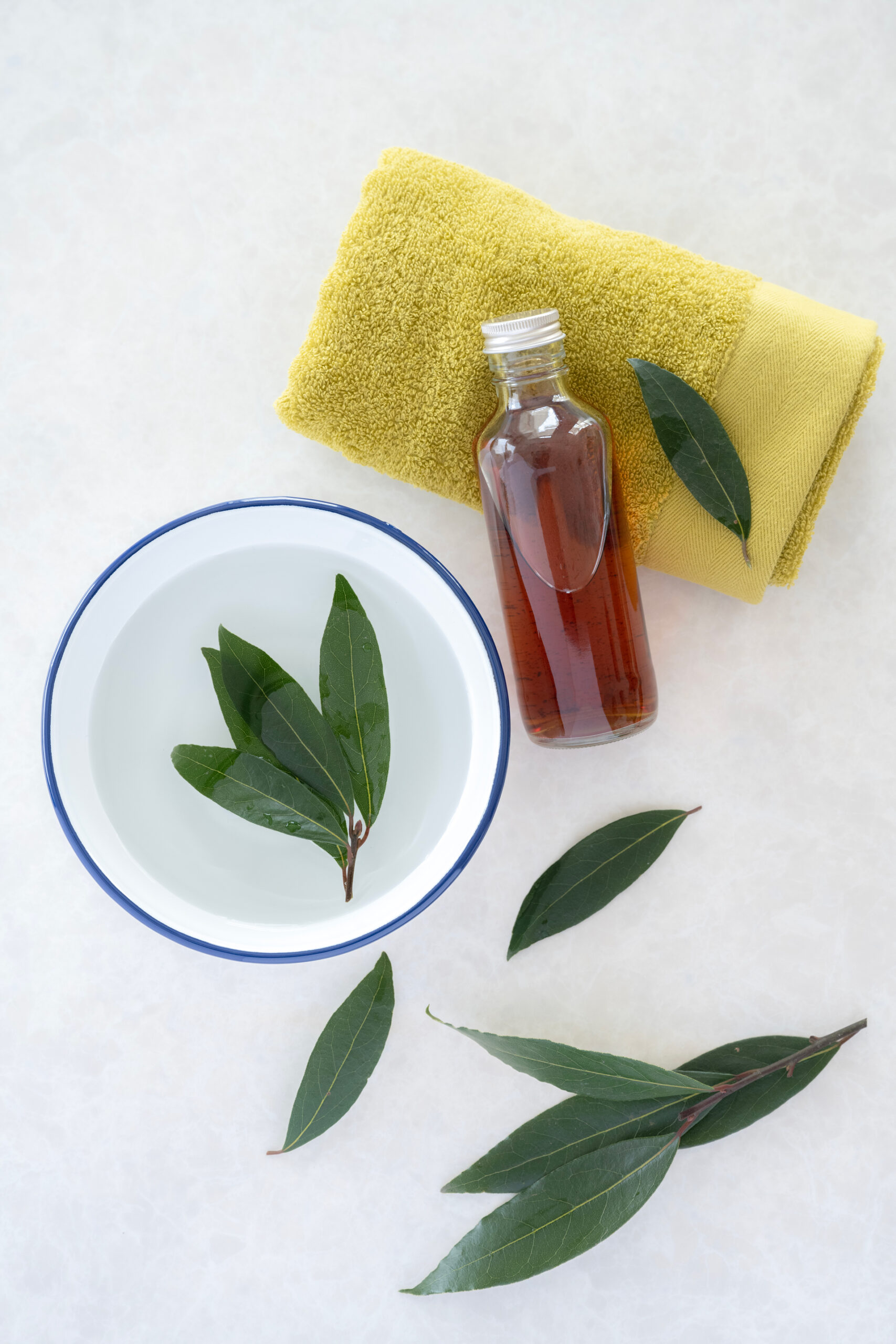 POINT クスノキ科のローリエは鎮静作用をもち、イライラや緊張を鎮めて情緒を安定させてくれます。有効成分を含んだ蒸気を逃がさないように、頭からタオルをかぶって吸引するとより効果的です。