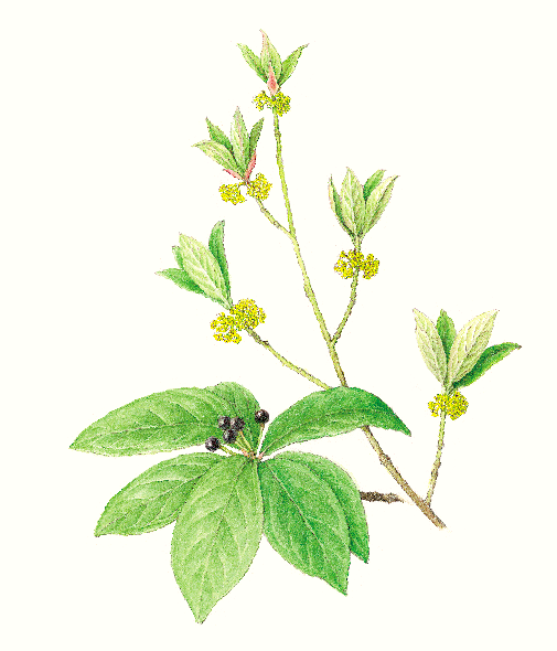 種小名のumbellataは「散形花序の」の意で、クロモジの花序に由来します。
