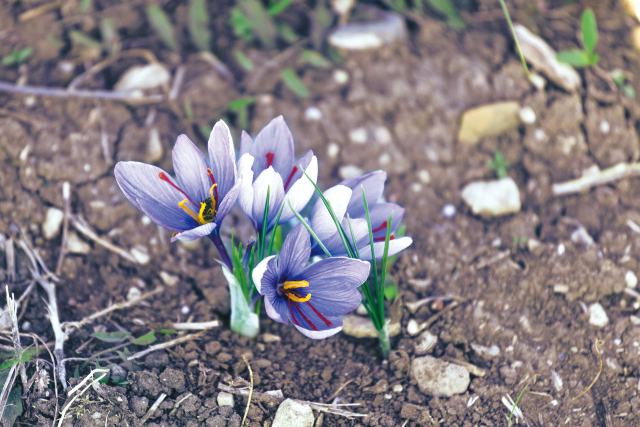 1年に1度、秋の短い期間にのみ咲く花には、3本に枝分かれした1本のめしべがあり、それらを1つひとつ手で摘み取り、乾燥させたものがスパイスとして利用される。