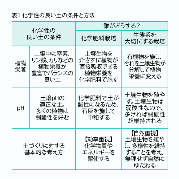 化学性の良い土とは、植物栄養となる元素が適量存在し、土壌pHが植物に適正な土のことです。