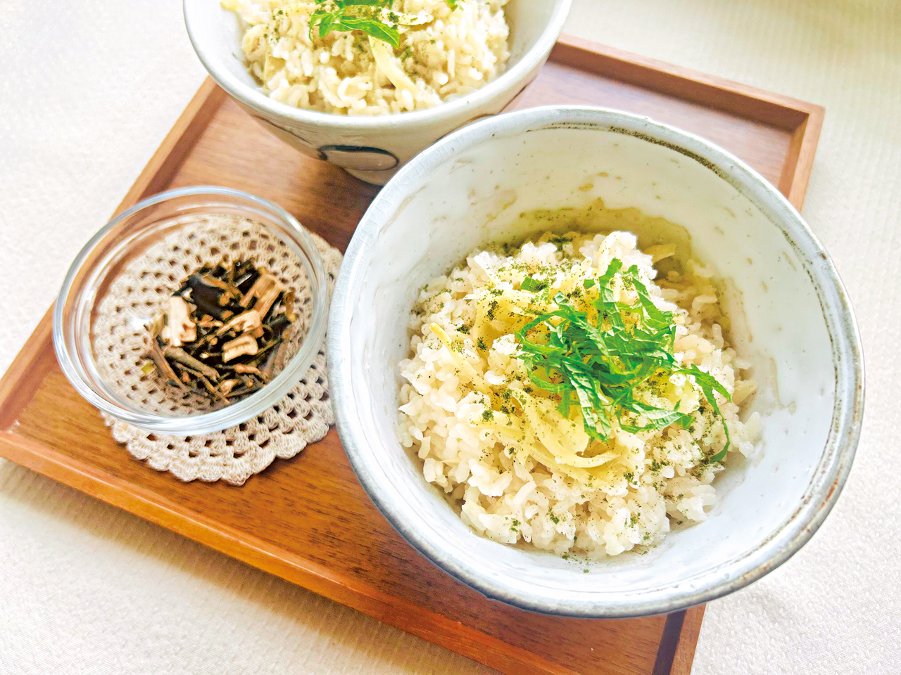 季節のハーブを楽しむレシピ : クロモジと新生姜の炊き込みごはん