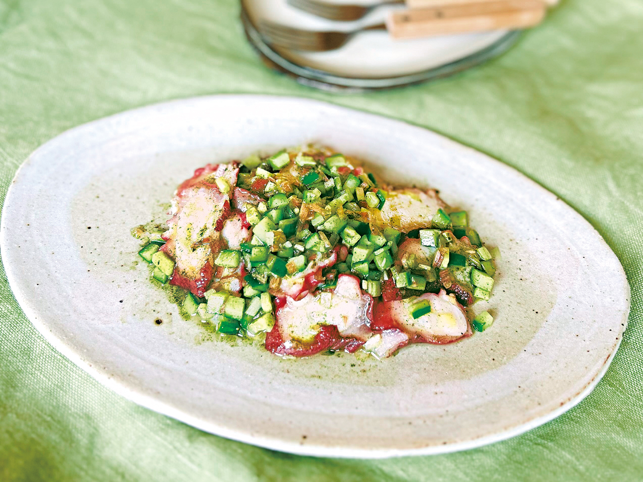 タコを使ってさっぱりとした和風カルパッチョはいかがでしょう。