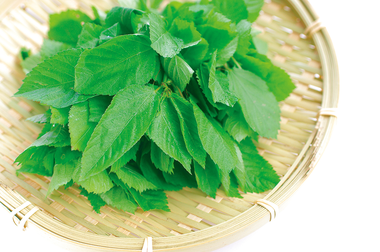 この植物には、赤ジソと青ジソがあります。赤ジソは、アントシアニンを含み、梅干しなどに使われます。青ジソは、緑色の葉っぱで、香りの抗菌効果を期待し、刺身などに添えられます。