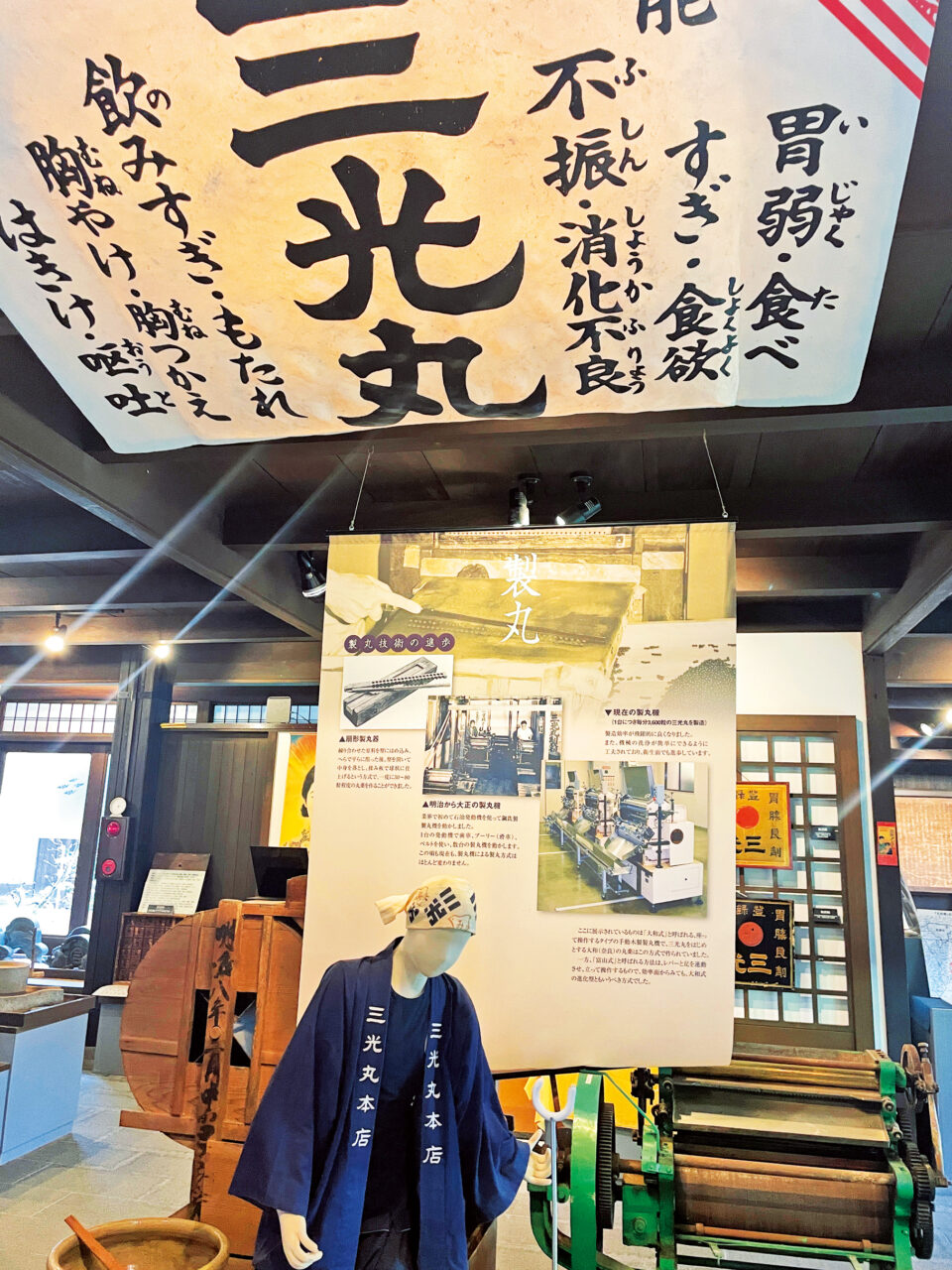 まずは700年の歴史をもつお薬の歴史や三光丸の作り方の工程、厳選された素材や資料館の見学から始まりました。中でも薬を担いで日本列島を渡っていた頃のお話は興味深く、現代の配置薬の風習につながることを知りました。また三光丸の原料や配合比は数百年変わらないことにも感銘致しました。