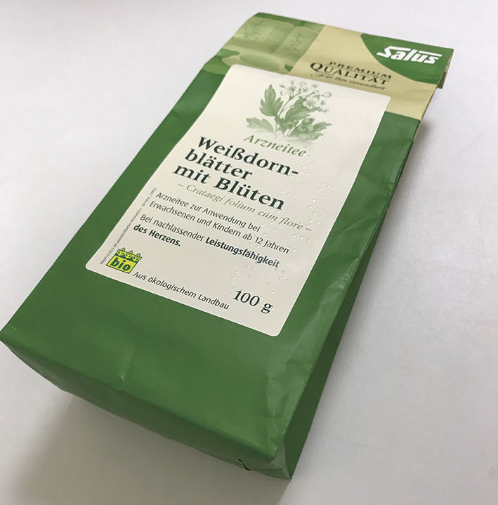 今回はCrataegus monogynaの花と葉を主体とするハーブティーのブレンド例をご紹介します。ホーソンは果実も使用しますが、以前ドイツで薬剤師やハイルプラクティカー(自然療法士)から、実の場合はサプリメントやジュースなどを活用することを勧められました。ハーブティーでは、果実から成分の抽出がしっかりできないためです。もちろん、果実を含むハーブティーを利用していただいても構いません。