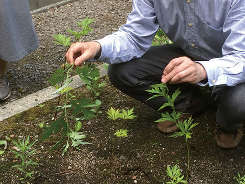 第2部は小樽薬科大学の山下先生による見学会がスタート。人数が多いため2班に分けて移動。小道を入るといきなり桑の木があり、『実を食べてもいいよ』の一言で一斉に食べ始めました。酸っぱい!小学生のときに道端で食べたことを思い出しました!続いてベリーのコーナーではハスカップやカシス、アロニアが食べ頃を迎えていました。これも味見をして次はトリカブトへ。間違いやすいヨモギとの違いを実際に植物を見て教えていただきました。ここのトリカブトは全国一毒性が強いのだとか。雪が深い、潮風、寒いなどの厳しい環境で毒性が増すそうです。その後は、甘草も実際に根を抜いて食べて、甘いことを確認。フェンネルも山椒のような味でした。エゾウコギやハマボウフウなど北海道独自の植物やセンキュウ、マオウ、ホップ、五味など身近にある植物を触って、見て、味わって、香りを嗅いでと五感で楽しんだ一日でした。