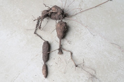カガミグサを和の生薬に入れるべきか悩む。カガミグサの根はビャクレン(白蘞)と呼び、中国の漢時代の『神農本草経』の下品に収載されているもので、日本へは江戸時代、亨保の初め、将軍吉宗は朝鮮、中国などの外国産薬用植物の国内栽培を実施するが、その中に、カガミグサ・白斂があった。幕府直轄の小石川御薬園、駒場御薬園、麻布御薬園の当時の栽培目録には、カガミグサの栽培が記録されている。