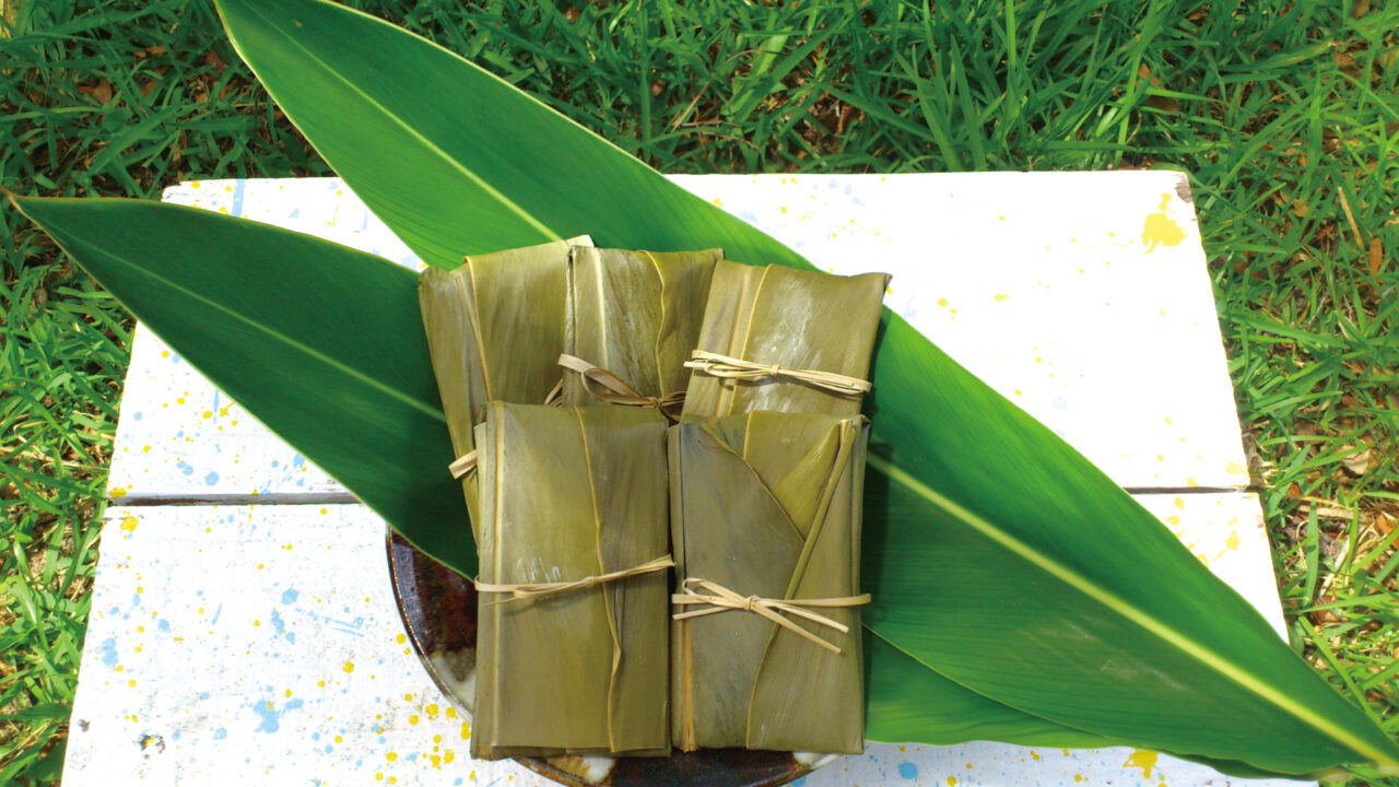 九州生まれの母親がサルトリイバラの葉で柏餅を作ってくれた。この葉をダンゴッパと呼んでいたことを思い出す。また、奄美大島生まれの同僚がゲットウの葉で包んだ餅があると言っていた。端午の節句で供える粽と柏餅は似ているが、粽は中国の伝統的食べ物であり、柏餅は江戸時代に作られた菓子である。新潟の笹団子も柏餅と同じ仲間かもしれない。東京の桜餅は江戸の末期に長命寺で作られたものであり、道明寺餅は大阪の道明寺粉で作った京都の桜餅とツバキの葉で餅を挟んだ椿餅がある。最近では椿餅が道明寺餅として売られている。餅を包んでいる葉には、サルトリイバラ、カシワ、ゲットウ、チマキザサ、ツバキがある。