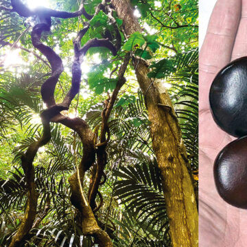 南の島の花便り 今年、八重山地方は空梅雨状態で夏を迎えました。以前は夏の夕方にはスコール(方言でカタブイ)が来て野山を潤わせましたが、ここ15年以上スコールはなくなり夏の水は台風頼みになっています。それでも、亜熱帯気候の島では内地では見られない熱帯果樹が民家の庭先や道路際などに多・・・