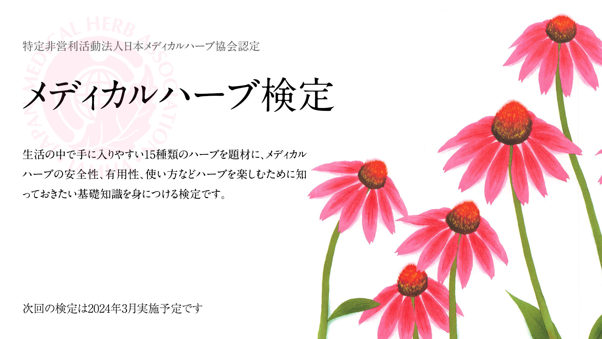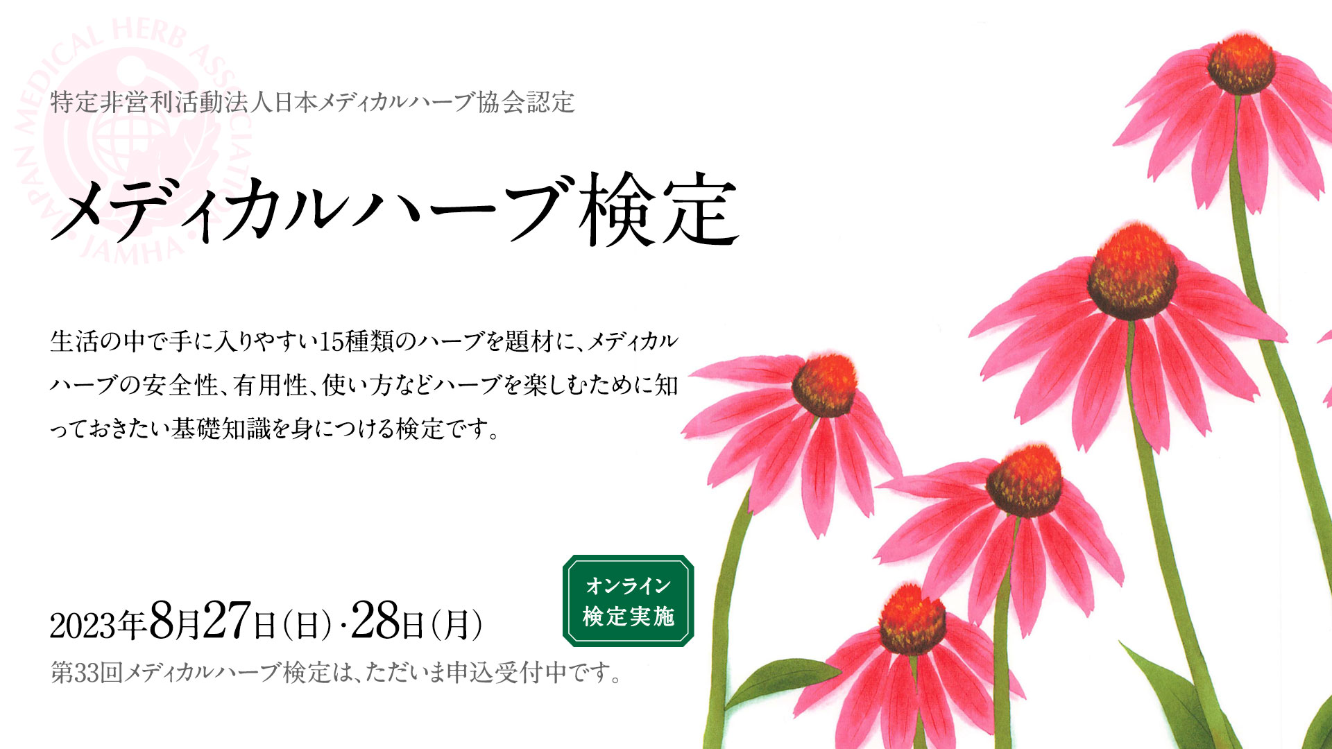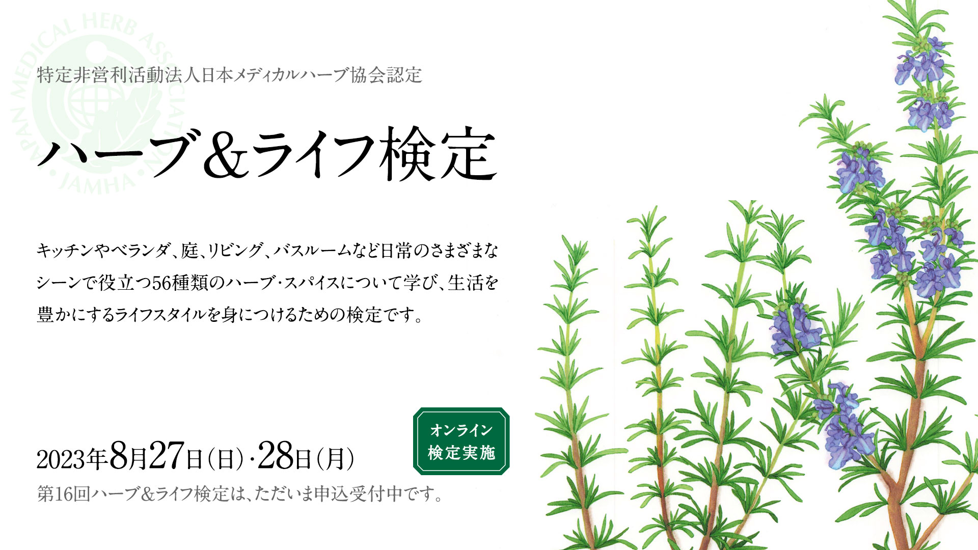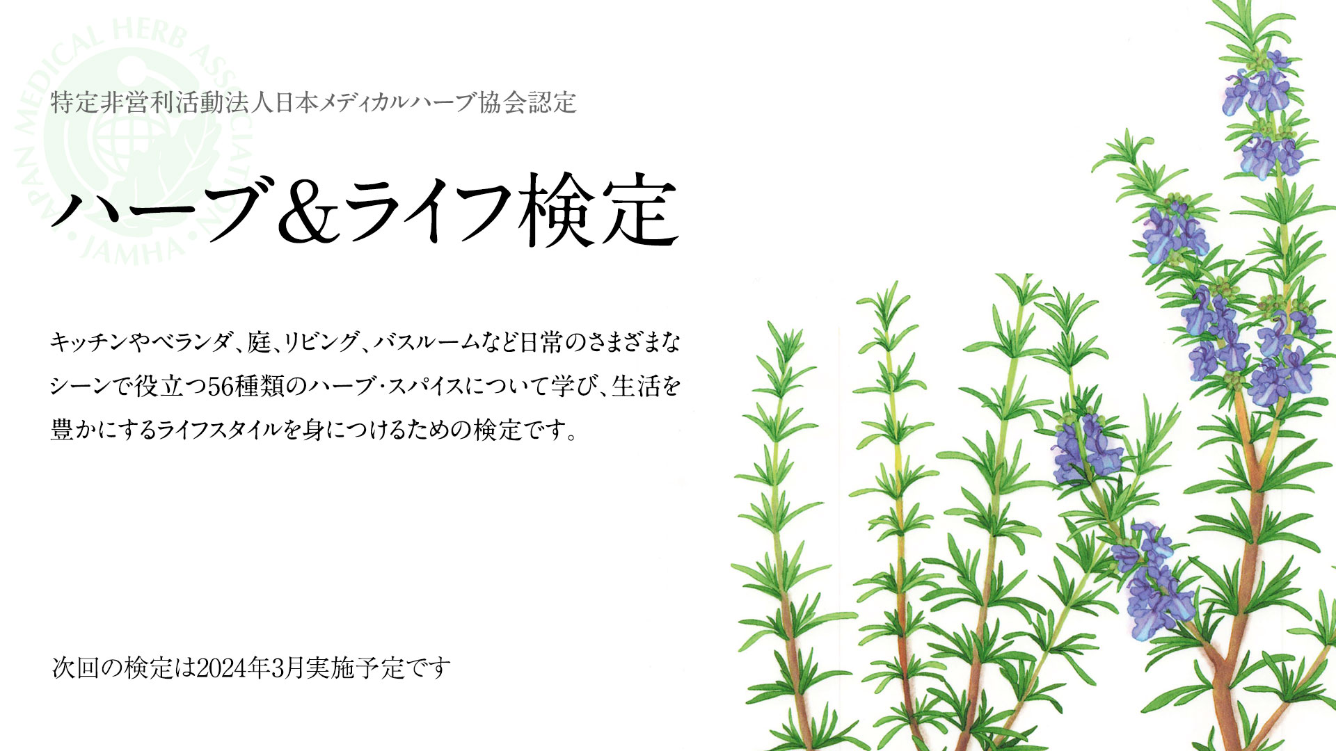 「生活に役立つ香りのある植物」である「ハーブ」の基本的な使い方を学ぶために、日本メディカルハーブ協会では「メディカルハーブ検定」「ハーブ&ライフ検定」の二つの検定試験を行なっています。