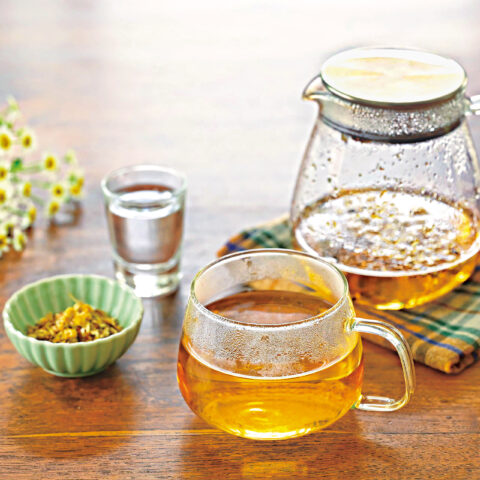 敏感肌の人にもおすすめの優しいハーブウォーター。このレシピで100 mLくらいの芳香蒸留水ができます。そのままローションとして使用できますが、最後にグリセリンを小さじ2ほど加えると、とろりとしたテクスチャーになり、保湿効果がより高まります。