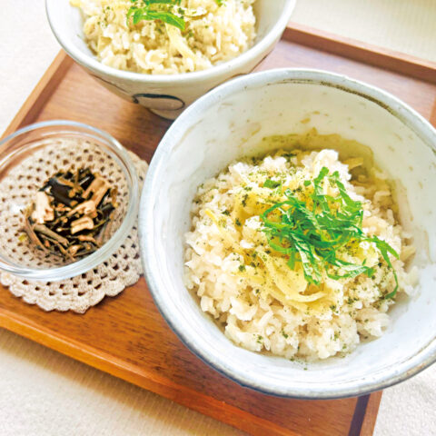 季節のハーブを楽しむレシピ : クロモジと新生姜の炊き込みごはん