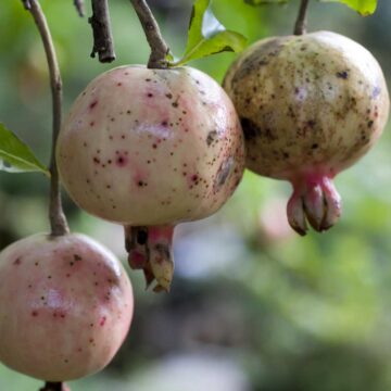 ザクロ 石榴、柘榴、若榴 Punicagranatum ミソハギ科(ザクロ科)の落葉小高木の果実 古来から重宝された美容食 “再生”の象徴として、ボッティチェッリ作「ザクロの聖母」で重要な鍵として描かれているザクロ。硬い皮の中には、美しく小さなルビー色の粒がギッシリ・・・