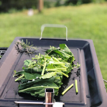 ハーブを燃やした煙で肉や魚介に香りを! 〔材料〕〔フレッシュハーブ〕ローズマリー、タイム、レモングラス、ローリエ(枝ごとでもOK)などお好みのものを1〜2種類※レモングラスは乾燥させてもOK。いっそう燃えやすくなります。1. 炭に中にハーブを入れて一緒に燃やし、その上に設置した網・・・