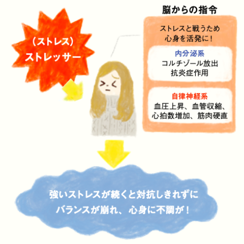 ストレスを受けると、体に何が起こる? ストレスは、冷えから胃腸障害、肌トラブル、がん、うつまで、心と体のありとあらゆる問題に関係します。ストレスがどのように病気を引き起こすのか、その体内メカニズムを理解しましょう。 ストレスに対する防御反応がやがて病気を引き起こす 私たちの体は自・・・