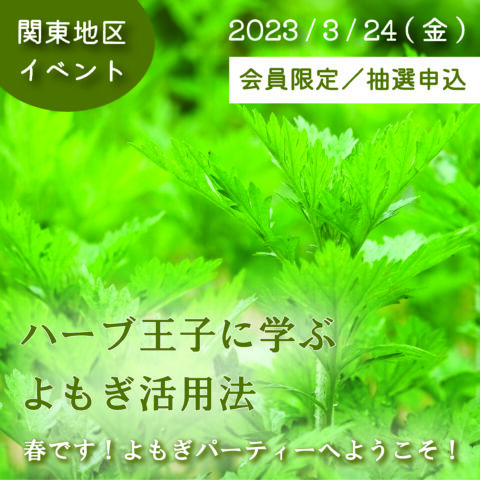 2023年3月24日(金)【関東地区イベント】ハーブ王子に学ぶよもぎ活用法~春です!よもぎパーティーへようこそ!~(会員限定/抽選申込)