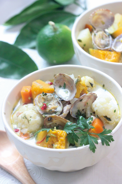 本来は牛乳やクリームで濃厚な味付けのクラムチャウダーを、ハーブや豆乳を使い、香りを楽しむさっぱりとした味付けに仕上げました。塩分は味噌のみ。アサリの塩味やたっぷりのハーブを使うことで塩分を減らし、自然の美味しさを感じることができます。 材料(4名分) 豚バラ肉(100g/ひと口大・・・
