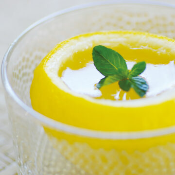 爽やかな初夏の香りをどうぞ!暑い日には、器も十分に冷やしておきましょう。 材料(5個分) レモン 5個粉ゼラチン 大さじ1弱水 45ccカモミールティー 300㏄(湯300㏄、カモミール2g)砂糖 70g(大さじ8弱)レモンの皮のすりおろし 1個分カモミールまたはミント(飾り用)・・・