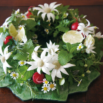 幸せを呼ぶフレッシュハーブのテーブルリース梅雨を迎える6月。お出かけするのは、ちょっとためらう季節です。久しぶりに仲良しのお友達を呼んでハーブの恵みたっぷりのパーティーはいかがですか? ハーブと、季節のフルーツや野菜を飾って爽やかな香りのテーブルリースを作りましょう。ハサミを入れ・・・