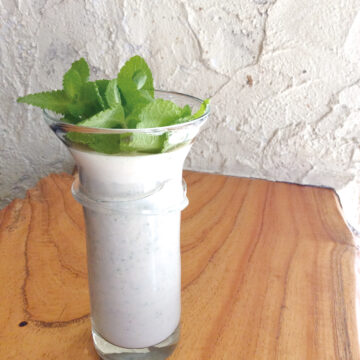 材料(1杯分) ●完熟バナナ 1本 ●豆乳 100ml ●フレッシュミントの葉 たっぷり(ひとつかみ位) ❶バナナは、皮をむいてスジをとり、手でちぎってミキサーに入れる。❷豆乳を加えて撹拌する。滑らかになったらミントの葉を加え、さらに滑らかになるまで攪拌する。★甘さが足りないよう・・・