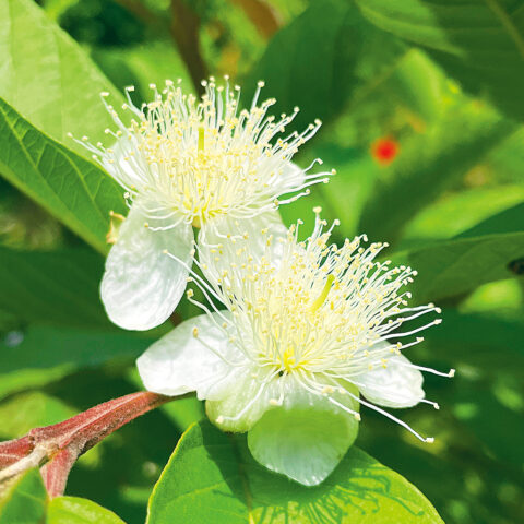 沖縄のお婆たちは古くから野山の植物を薬用として利用していました。お婆たちに聞くと様々な植物の名が効能と共に浮かび上がってきます。そんな中で現在でも利用されている植物に目を向けてみましょう。 まず、沖縄三大薬草といわれるグアバ・ウコン・クミスクチンからご紹介していきます。 ●グアバ・・・